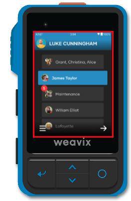 Tap on a channel to open it, or use the navigation buttons to highlight it and press the circle button to select it. Once inside, you’ll see a list of messages from that channel, showing who sent each message, when it was sent, and giving you the option to read the transcription or playback the audio.