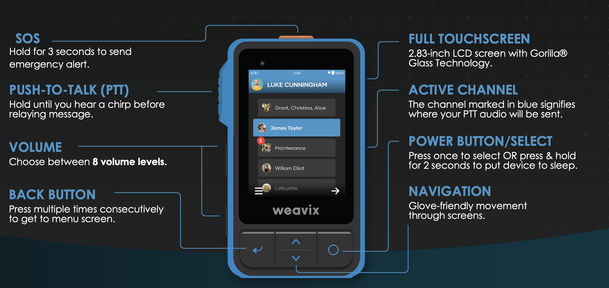 After entering a channel, it becomes your active channel, meaning any messages you send using the blue PTT button will go directly into that channel.